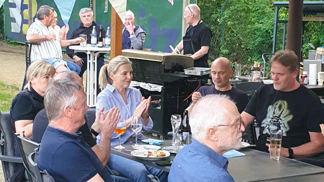 Das Buffet, zu dem jeder beigetragen hat, bot wie erwartet eine bunte Auswahl und zum Abschluss folgte der gemütliche Ausklang samt Siegerehrung bei einem Schoppen und Köstlichkeiten vom Grill.