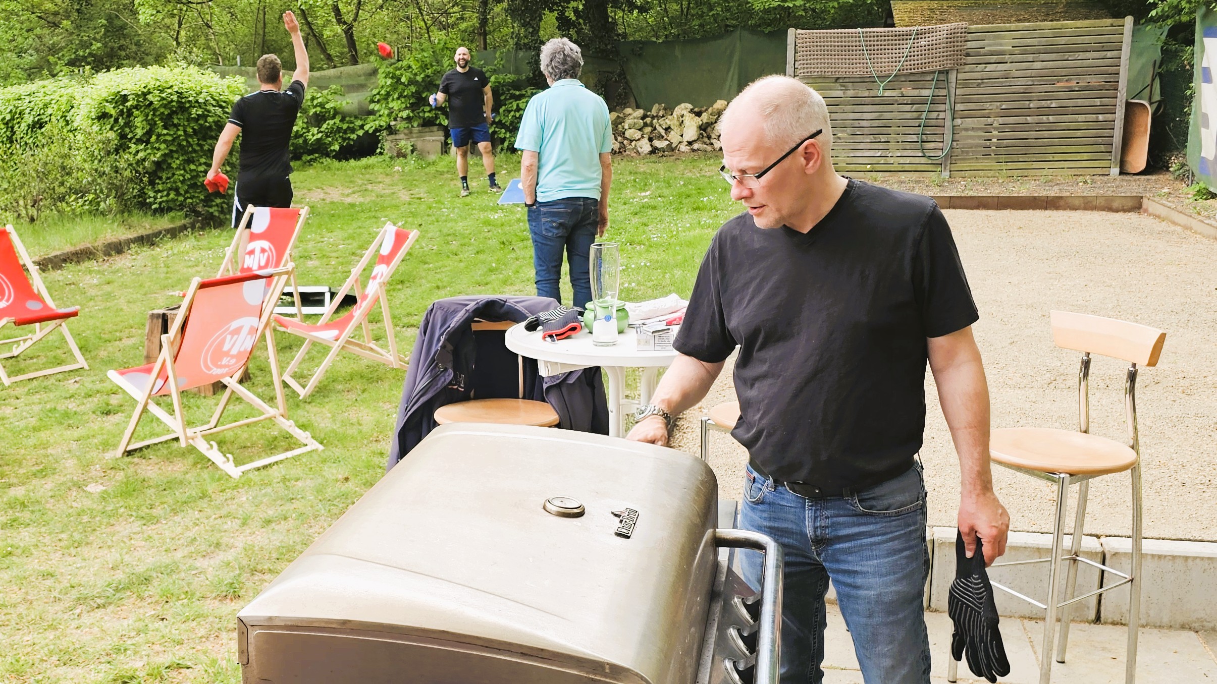 Wer in einer Runde spielfrei hatte, konnte sich bei verschiedenen Spielen, z.B. Boule oder Cornhole, vergnügen oder sich bei Andy Bartels über den Umgang mit dem Defibrillator schlau machen.